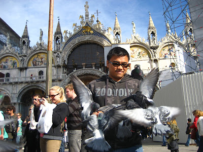 Around Saint Mark Square you can feed lots of big-fat pigeons but you have to watch out for the "poops" because it can get very irritating. Pigeons will come all over you and eat everything you have to offer. Do not forget to look up the Venetian Tower and if you have time try to go up to the tower and gaze the whole square. If you want to relax a little bit go to one of the cafes and sip some fresh Venetian cappucinno while listening to a live classical band.
